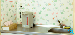 女性用のパウダールームです。おむつ替えの台と授乳室をご用意しております。 -