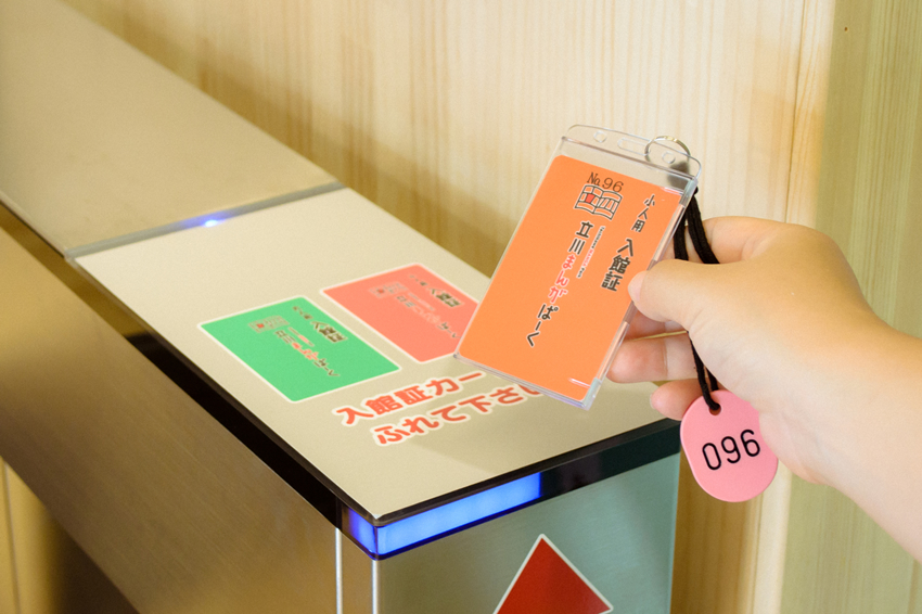こちらで靴を入れます。鍵が入場カードになります。 -